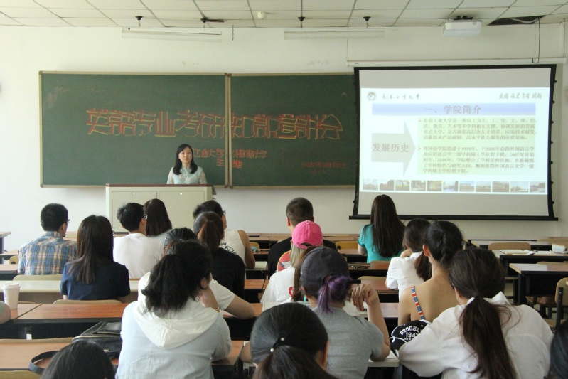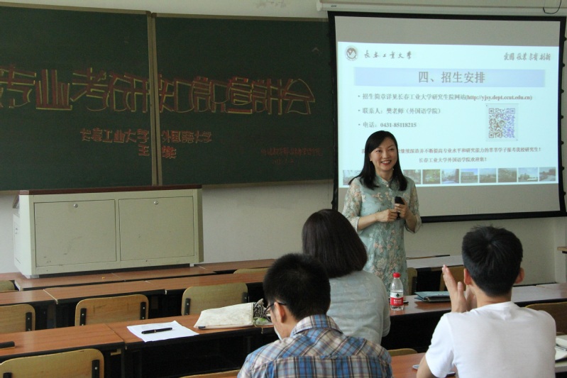 王轶副院长前往长春中医药大学进行研究生招生宣讲。此次宣讲活动得到长春中医药大学英语专业学生的积极响应,2016级和2017级英语专业的全体同学早早来到教室,等待宣讲活动开始。