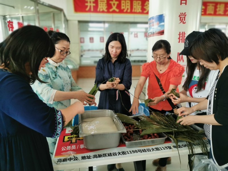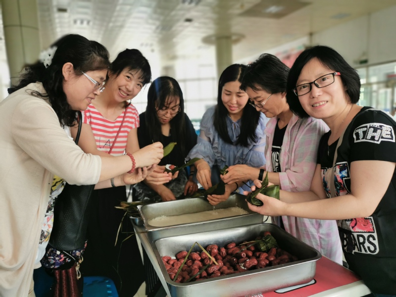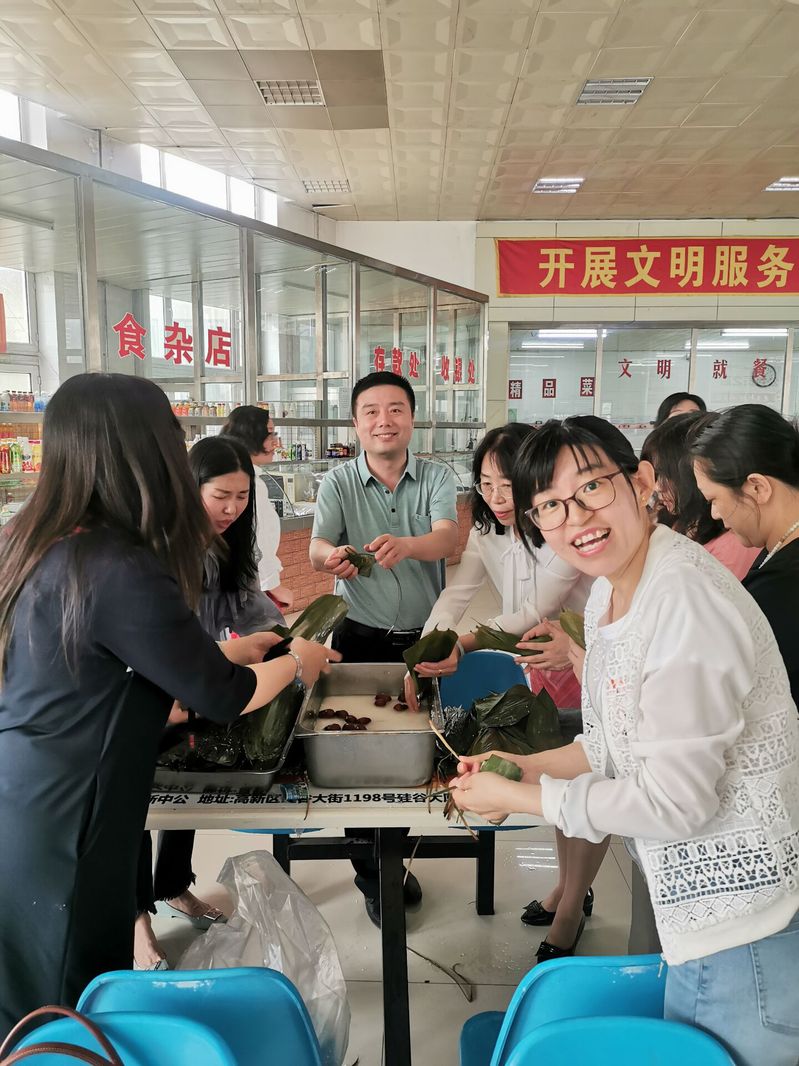 6月5日下午,新澳彩资料 组织全体教职工开展了端午“粽香传真情”活动。林园校区食堂为此次活动精心准备了优质的糯米、大大的红枣、棕绳方便袋等等,师傅们手把手交,老师们认认真真学,现场充满了祥和的节日气氛。