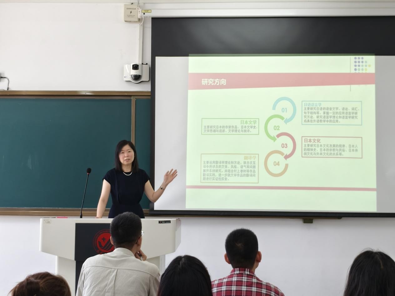 的师资力量、学科特色和人才培养成果。结合当前国际形势和外语学科发展新趋势,她强调外语人才应当具备国际视野、专业能力和创新精神,勉励同学们珍惜研究生阶段的学习时光,夯实专业基础,积极参科研和社会实践,不断提升综合素质。
