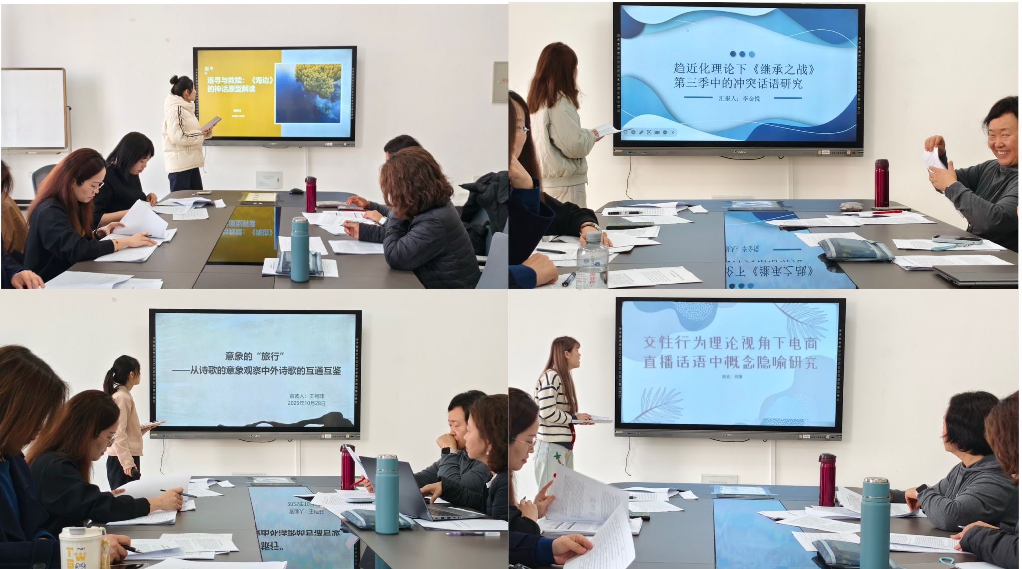 同时,本届论坛围绕外国语言学及应用语言学研究、比较文学与跨文化研究、外国文学研究、翻译学研究、中外语言文化比较研究和理解当代中国视角下的对外传播研究这六个主要议题,分为三组进行。参与论坛的研究生们以饱满的学术热情和自信的汇报状态,紧扣各学科前沿方向,通过 PPT 直观呈现研究框架、核心见解与创新亮点。各分论坛评委组组长立足各自研究领域,对学生的学术成果进行了多维度的总结与点评。
