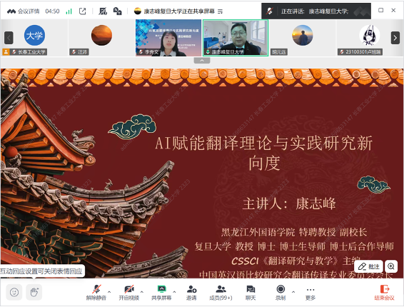 师生线上作了题为《AI赋能翻译理论与实践研究新向度》的学术报告。报告从AI+大翻(口)译、体认口译学溯源、体认口译学定义、论要解析、视译眼动实验、带稿同传眼动实验等方面,具体阐述了AI赋能下翻译研究范式如何进行转型。新澳彩资料