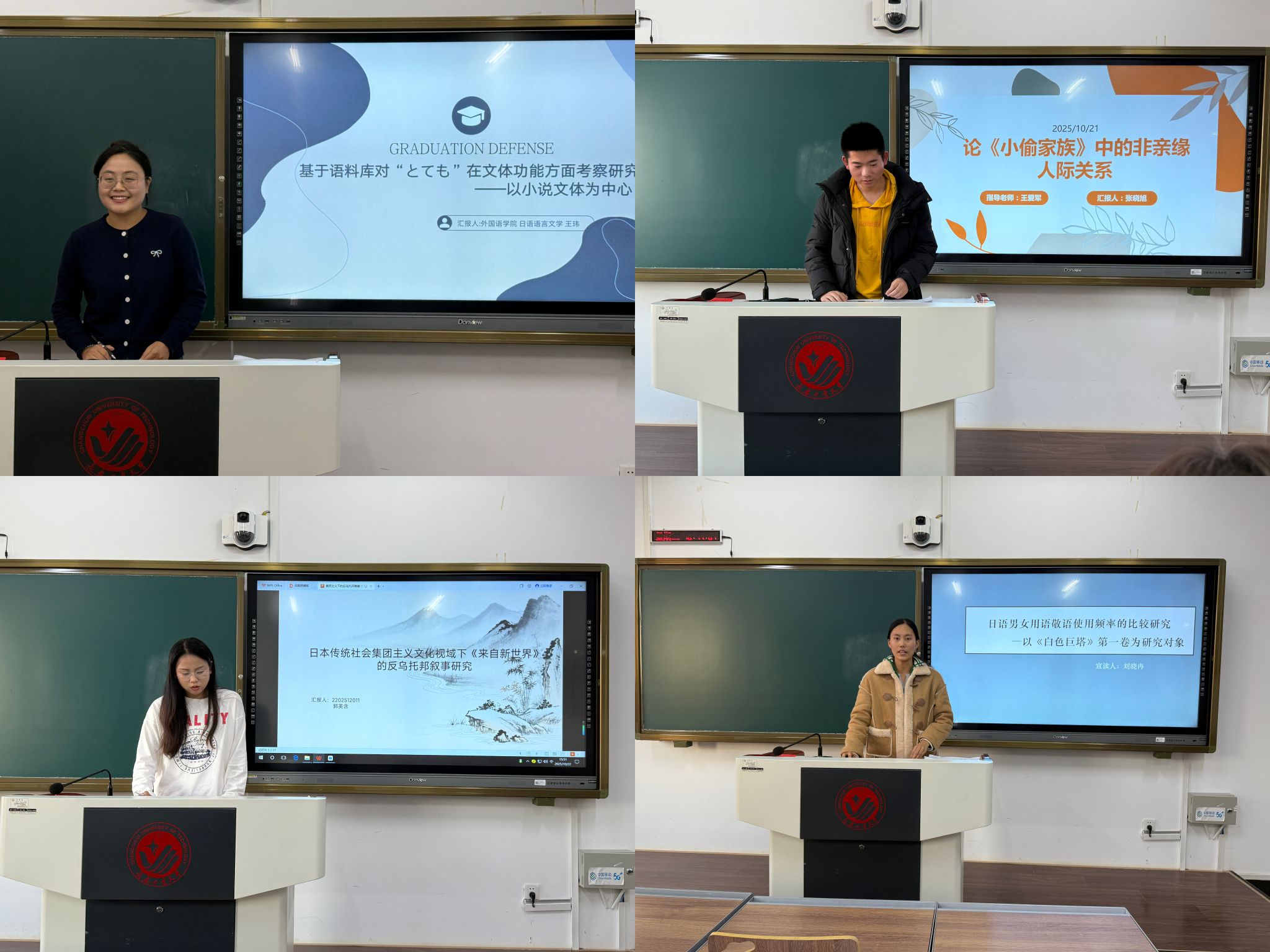 第三分论坛:日语语言文学组(2024级研究生)的专家评委针对同学们论文的研究框架、文献梳理、论证逻辑等方面进行细致指导,既肯定了同学们在研究中的创新点,也指出了部分论文在理论应用深度、研究方法规范性上存在的不足,并结合具体案例给出了切实可行的修改建议,帮助提升学术科研能力。