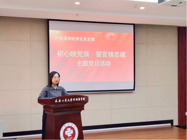 预备党员代表赵杨同志在发言中向悉心培养自己的党组织表达了诚挚而深切的谢意,并表示今后将以更高的标准严格要求自己,持续深入推进政治理论学习,时刻牢记全心全意为人民服务的根本宗旨。她将全力以赴为同学们服务,积极发挥党员的先锋模范作用,用实实在在的行动诠释党员的初心和使命。