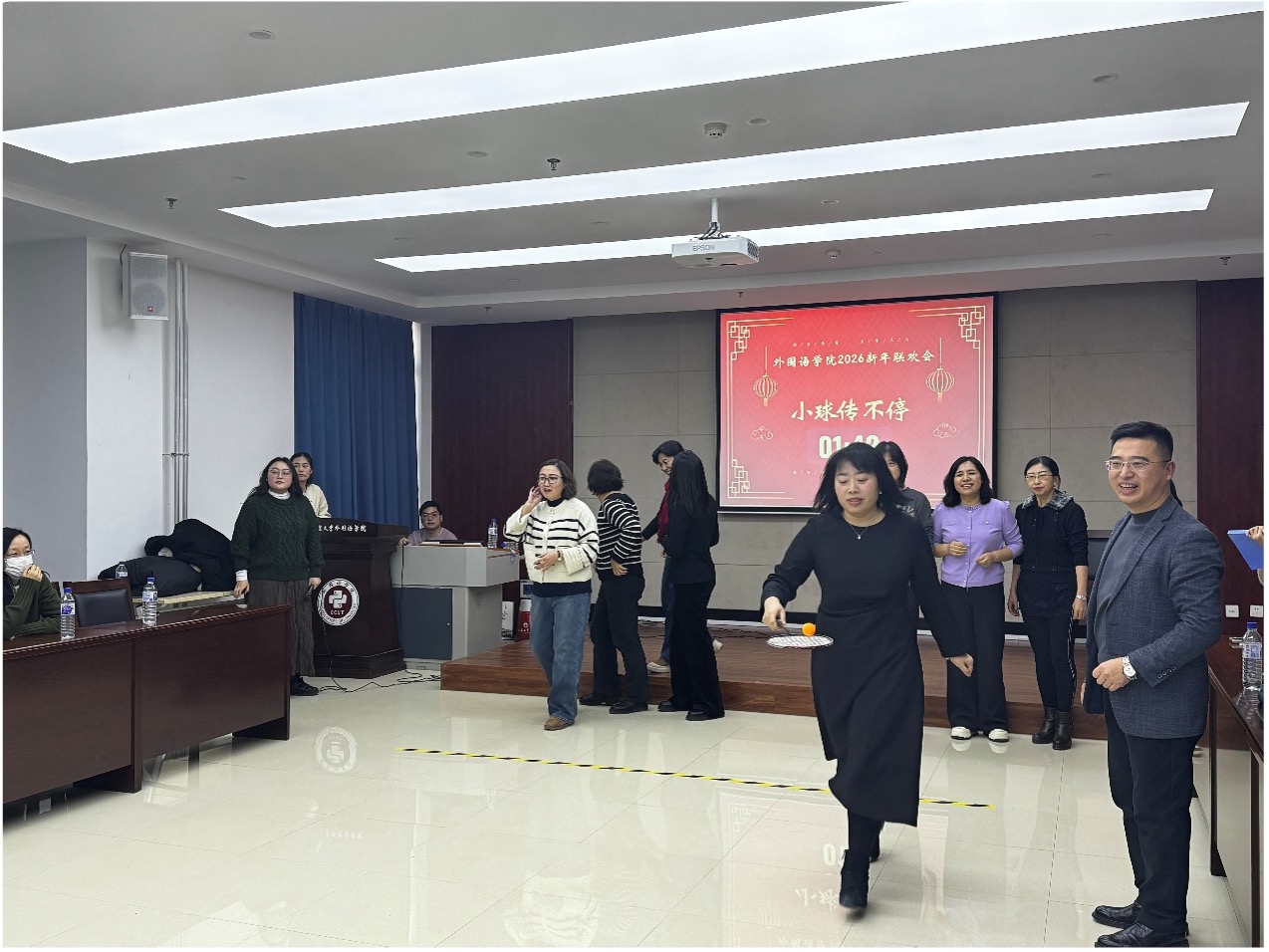 趣味竞技,同心聚力。全体教师分为四个小组,依次展开“你比划我来猜”“小球传不停”“五块一毛手拉手”“听歌识曲”四项游戏比拼。各组成员默契配合、奋勇争先,展现出如骏马奔腾般的昂扬斗志与协作精神,现场气氛热烈,欢声不断。