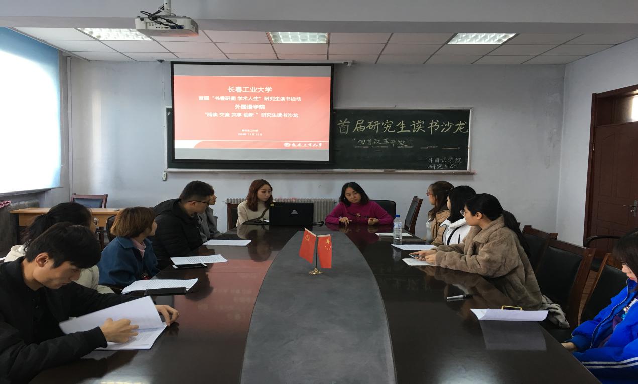 党委副书记王颖群老师参加了此次读书沙龙活动,她用自身经历给我们讲述了改革开放带来的巨大变化,并对我们研究生学习生涯和学术研究提出了一些宝贵的指导意见。随后,英、日、俄三个专业的同学一起回顾了改革开放40年的光辉历程,以及改革开放从各个方面给我们带来的影响,并且分别分享了自己的感悟与收获。