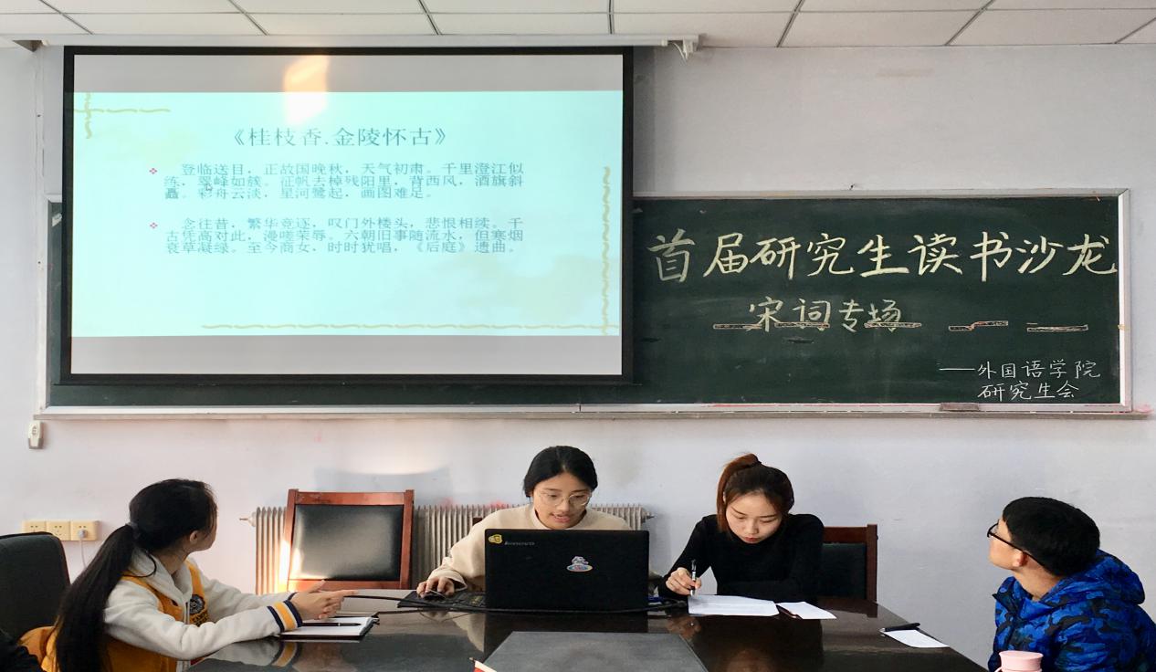 研究生会举办首届“书香研图 学术人生”研究生读书沙龙系列活动,共三次读书沙龙活动,主题分别为——“文学中的文化碰撞”、“回首改革开放”和“雅言传承文明 经典浸润人生——宋词专场”。
